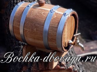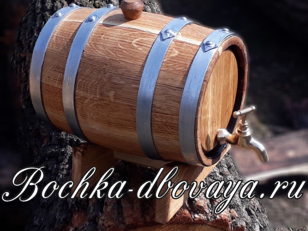 Дубовая бочка для коньяка объемом 3 литра идет в комплекте с изготовленными из древесины подставкой и пробкой для заливного отверстия. Оказывает благотворное воздействие на напиток, насыщая полезными веществами и пропуская кислород, облагораживает вкус и аромат, придает характерный золотистый оттенок, минимизирует содержание вредных примесей. Рекомендуется обжиг чуть выше среднего.