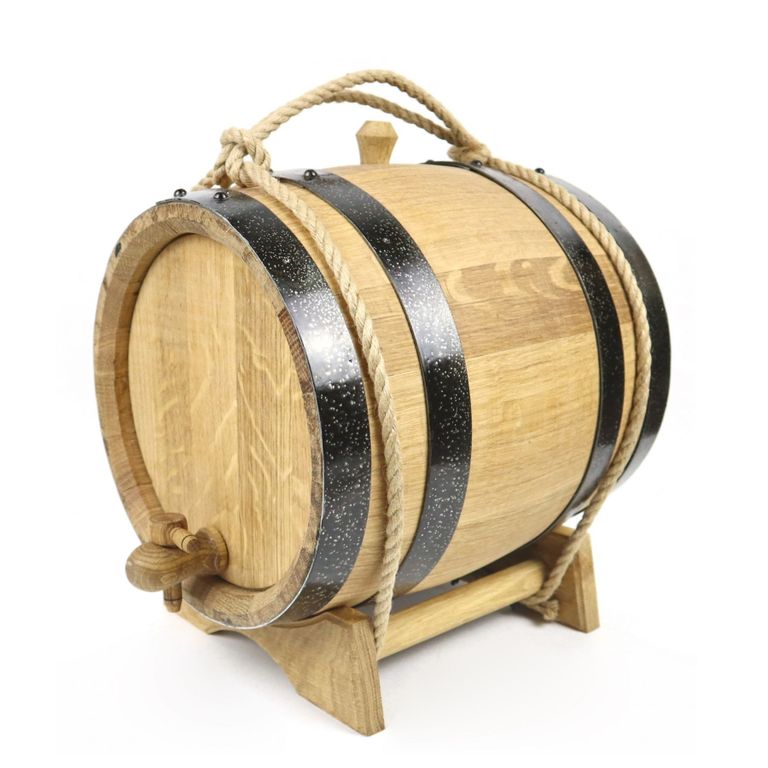Если вы знаете, как изготовить самогон в домашних условиях, то вы, наверняка, в курсе, что без дубового бочонка вам не обойтись. Выдерживать самогон в колотом бочонке – одно удовольствие. Предлагаем вашему вниманию 3 литровый бочонок из настоящего колотого дуба. Он придаст вашему крепкому алкогольному напитку естественный светло-коричневый оттенок, древесный вкус и аромат дубовых щепок. Настоящий русский напиток! Конечно же, конкретно настаивать в такой маленькой таре не совсем удобно. Но зато, вы можете использовать такой бочонок, как подарок своему другу. Уверяем, его счастью не будет предела.