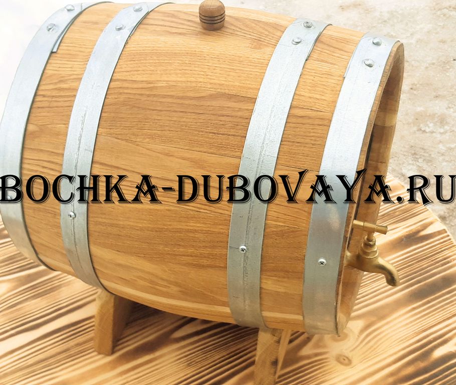 Дубовая бочка для вина объемом 10 литров идет в комплекте с изготовленными из древесины подставкой и пробкой для заливного отверстия. Оказывает благотворное воздействие на вино, насыщая его полезными веществами, облагораживая вкус и аромат, минимизируя содержание вредных примесей.