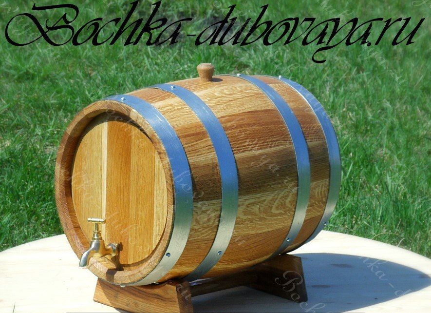 Дубовая бочка для вина объемом 15 литров идет в комплекте с изготовленными из древесины подставкой и пробкой для заливного отверстия. Оказывает благотворное воздействие на вино, насыщая его полезными веществами, облагораживая вкус и аромат, минимизируя содержание вредных примесей.