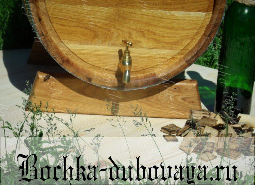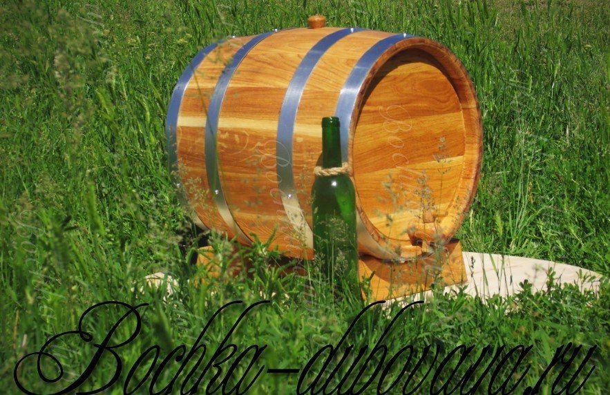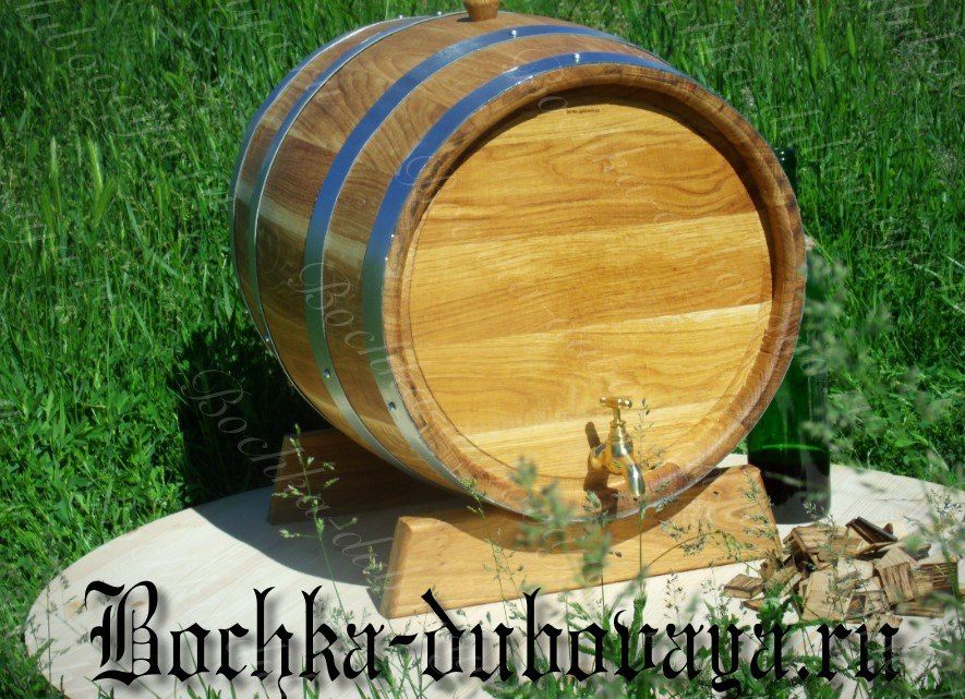 Дубовая бочка для вина объемом 30 литров идет в комплекте с изготовленными из древесины подставкой и пробкой для заливного отверстия. Оказывает благотворное воздействие на вино, насыщая его полезными веществами, облагораживая вкус и аромат, минимизируя содержание вредных примесей.