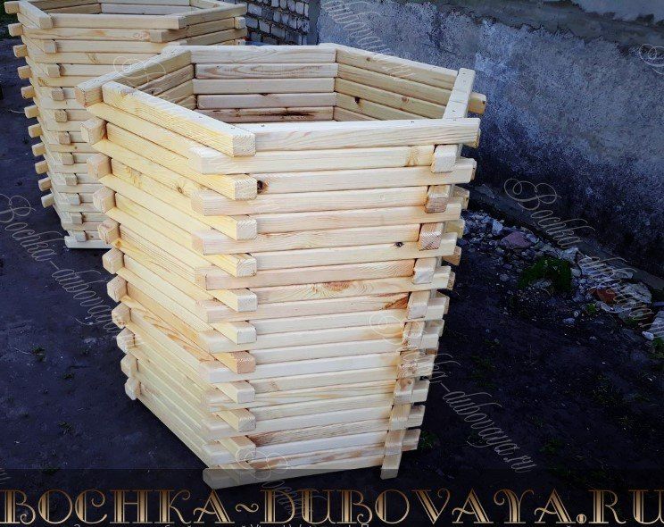 Шестиугольное деревянное кашпо